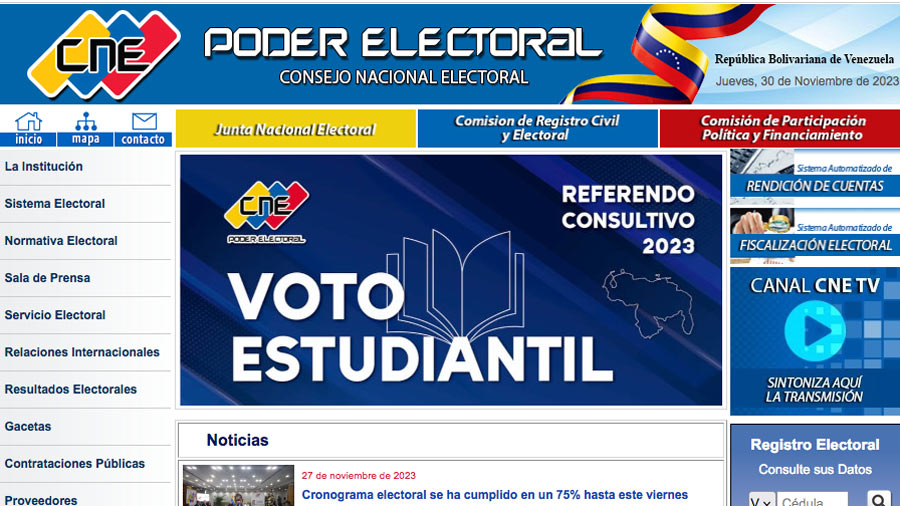 El Consejo Nacional Electoral (CNE), habilitó, este miércoles, un enlace en su página web, para que jóvenes estudiantes entre 12 y 18 años, puedan votar en el referendo en defensa del Esequibo, de este domingo 3 de diciembre.