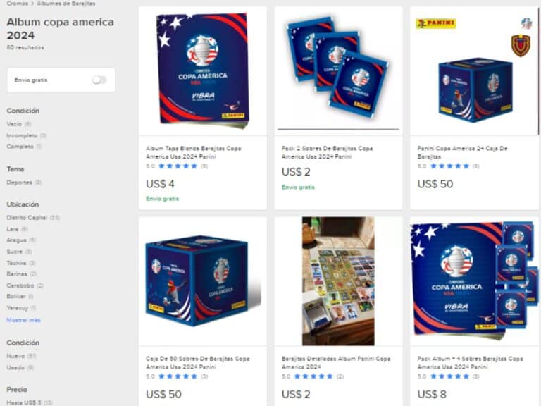 En Mercado Libre Venezuela el álbum y las barajitas se pueden encontrar en diferentes precios: