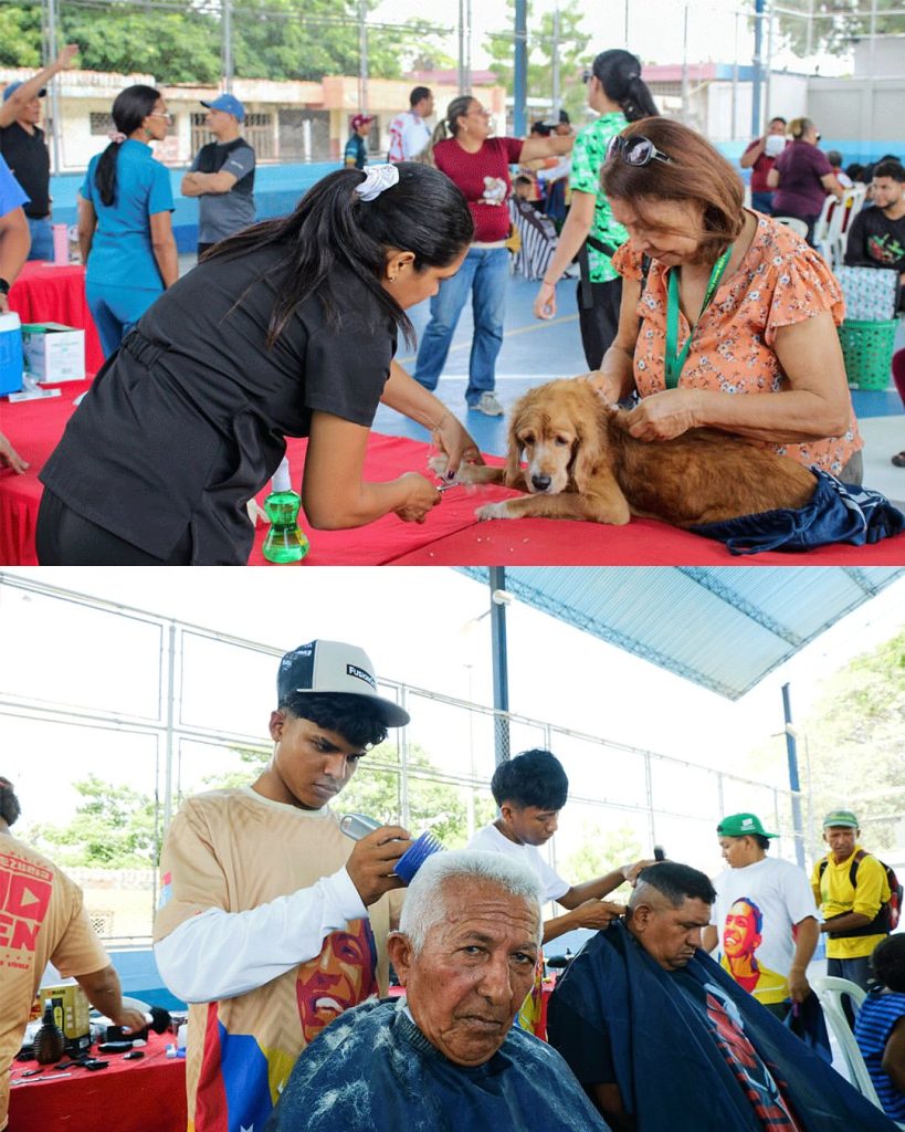 La actividad no se limitó a la venta de alimentos, sino que incluyó una jornada integral de atención social. Vecinos pudieron recibir consulta médica gratuita con entrega de medicamentos, así como atención veterinaria para sus mascotas. A esto se sumaron servicios de peluquería, barbería, asesoría jurídica y la presencia de un Punto Patria para la actualización de trámites.