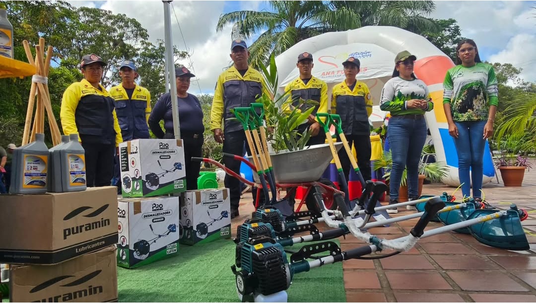 La dotación incluyó herramientas esenciales como desmalezadoras, rastrillos, cepillos, palas, carretillas, termos y machetes, así como implementos de seguridad industrial: guantes, botas, lentes y cascos protectores.