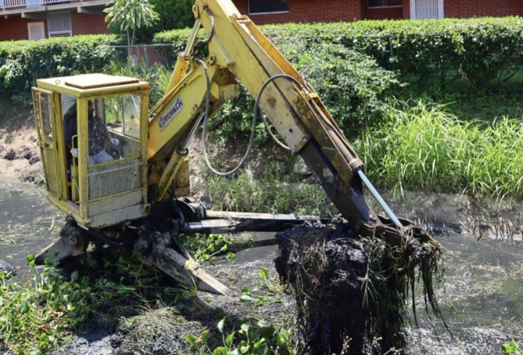 El equipo de servicios públicos está desplegando maquinaria especializada, incluyendo un equipo jumbo tipo araña, para sanear 250 metros lineales de este importante canal, que se extiende desde la avenida Centurión hasta la desembocadura del río Neverí.