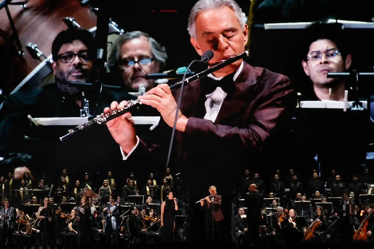 El Zócalo de la Ciudad de México fue escenario de una presentación multitudinaria que reunió a más de 130 mil personas para presenciar un concierto especial del tenor italiano Andrea Bocelli, en una noche marcada por la mezcla de géneros y la emoción del público.
