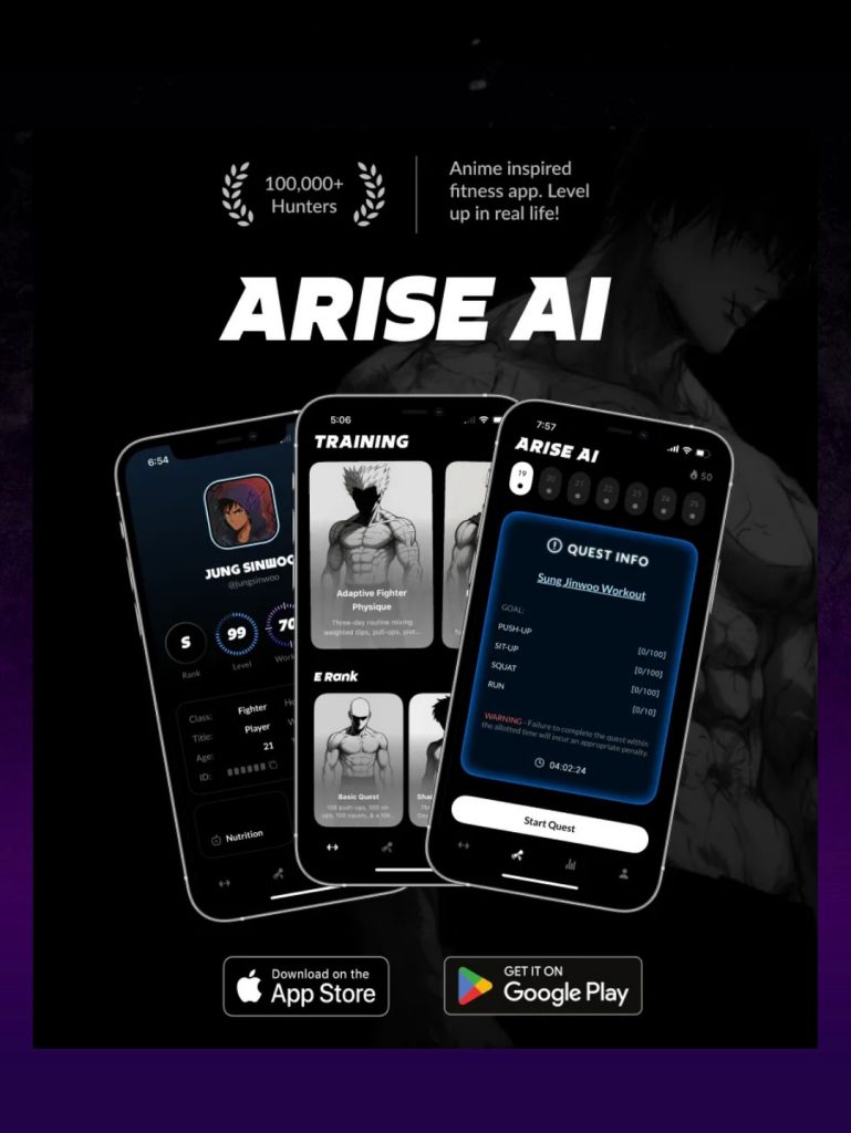 Para los seguidores acérrimos del manga y el anime, o para aquellos que simplemente buscan una forma más dinámica y entretenida de mantenerse activos, ARISE SOLO / Arise AI representa una forma épica de fusionar sus intereses. La aplicación ofrece una oportunidad única de canalizar la motivación de «subir de nivel» de Sung Jinwoo hacia metas de ejercicio reales.