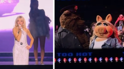 La invitada que se quedó con el show fue nada menos que la icónica diva de Los Muppets, Miss Piggy. La célebre estrella apareció en el escenario junto a Carpenter, y lo que siguió fue una secuencia cómica y cuidadosamente coreografiada. En el clímax del momento, la intérprete de «Nonsense» simuló que esposaba a Miss Piggy, cumpliendo con su rol de policía, como lo hizo a lo largo de su tour en el que replicó esto mismo con diversos famosos.
