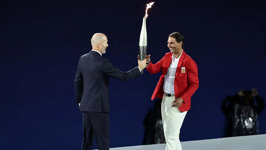El 14 veces campeón de Roland Garros, una pista que este sábado volverá a pisar en su debut en París 2024, apareció por sorpresa en el tramo final de la ceremonia de inauguración de estos Juegos Olímpicos para recoger la antorcha.