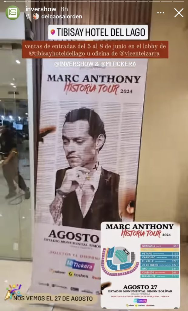 Puesto que, para las personas que se encuentran en otros estados del país, y quieran obtener sus entradas, deben permanecer atentos a las plataformas digitales de Invershow, para conocer las zonas disponibles para el concierto de Marc Anthony.