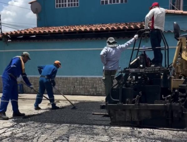 Con la aplicación de las primeras 300 toneladas de asfalto, avanza la rehabilitación vial en el sector La Encantada de la comuna Mi Gran Barcelona del municipio Simón Bolívar.