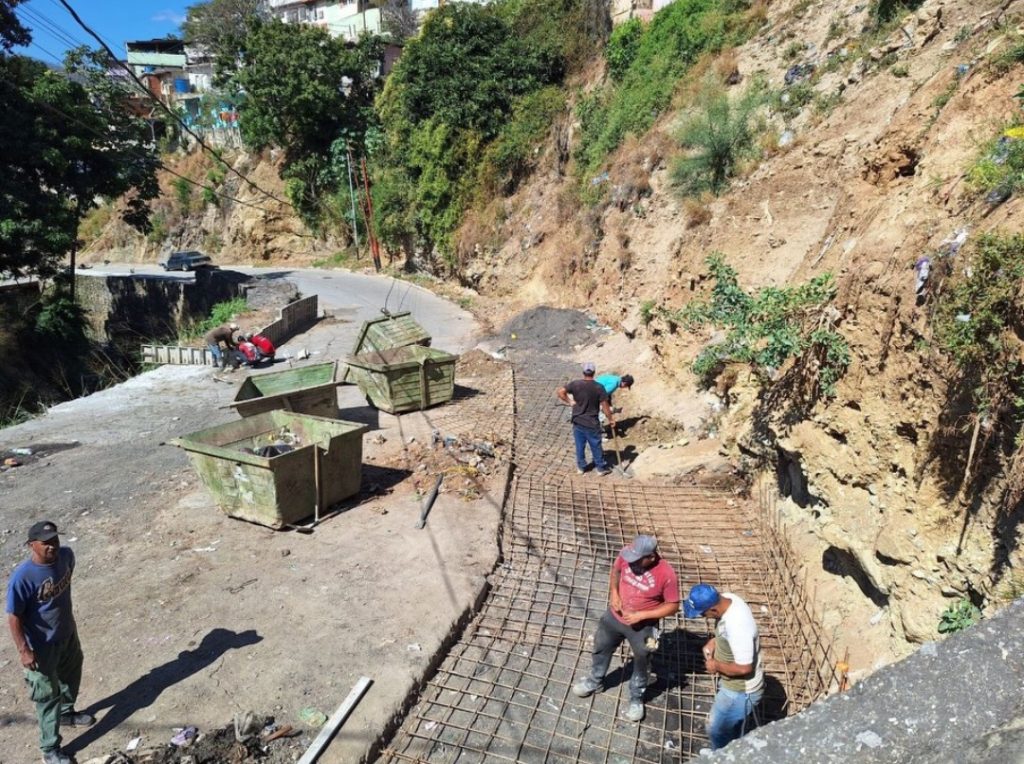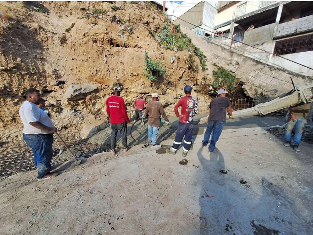 Se están desarrollando actividades de encofrado para el vaciado del muro de protección al talud y recalce de la torrentera, en el marco del «Plan de Desarrollo Integral corredor Pueblos Caribes Caracas – La Guaira” para la atención directa a las comunidades.