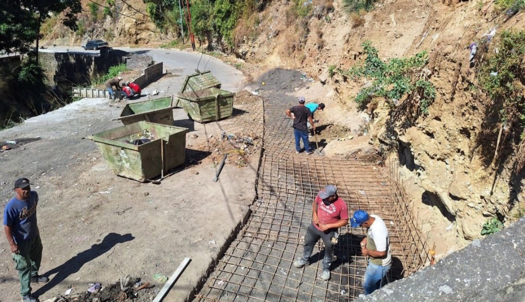 Se están desarrollando actividades de encofrado para el vaciado del muro de protección al talud y recalce de la torrentera, en el marco del «Plan de Desarrollo Integral corredor Pueblos Caribes Caracas – La Guaira” para la atención directa a las comunidades.