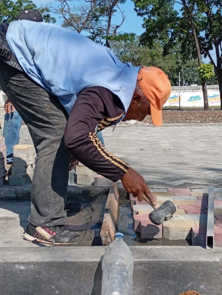 Continúan de manera sostenida los trabajos de revestimiento en la construcción de la nueva Plaza Bolívar de la parroquia Río Acarigua, municipio Araure, un proyecto que apunta a consolidar un espacio moderno destinado al encuentro y la convivencia de la comunidad.
