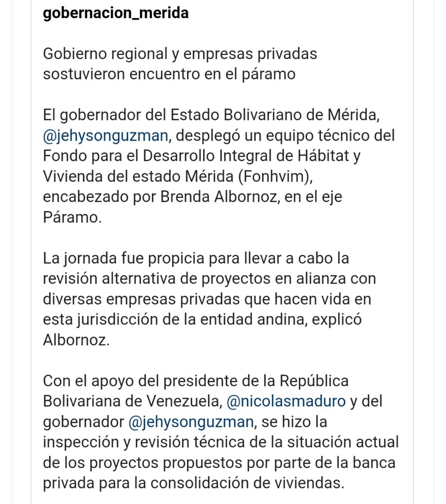 La información la dio a conocer el mandatario regional, a través de la cuenta en la red social en Instagram de la gobernación, donde indicó que la inspección contempla la revisión técnica y geográfica de la zona propuesta, para el levantamiento de viviendas que favorecerán a las familias que no cuentan actualmente con el derecho a un hogar digno en la entidad.
