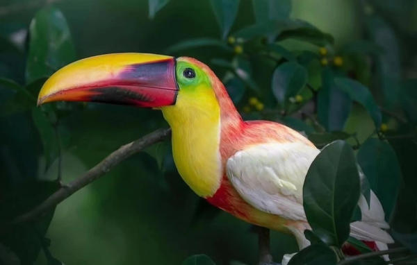 Apodado como «Unicornio» debido a su singularidad y belleza, este tucán se distingue de los animales albinos en que mantiene el color normal en sus ojos y otras partes del cuerpo, como su pico, y no presenta sensibilidad al sol. Se estima que la probabilidad de encontrar un tucán con estas características es de una en un millón.