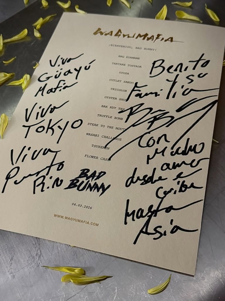 El intérprete llegó al restaurante Wagyumafia The Butcher’s Kitchen, conocido por su especialidad en carne wagyu, donde compartió un momento cercano con el personal del lugar. Allí dejó escrito en el menú: “Con mucho amor desde el Caribe a Asia”, un detalle que fue recibido con entusiasmo por los comensales y rápidamente se volvió tendencia entre sus seguidores.
