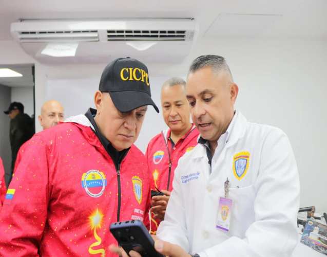 Cabello estuvo acompañado por el director del Cicpc, Douglas Rico y funcionarios de esta prestigioso cuerpo de investigaciones al que el Ministro no dudó en ubicar entre «los mejores del mundo».