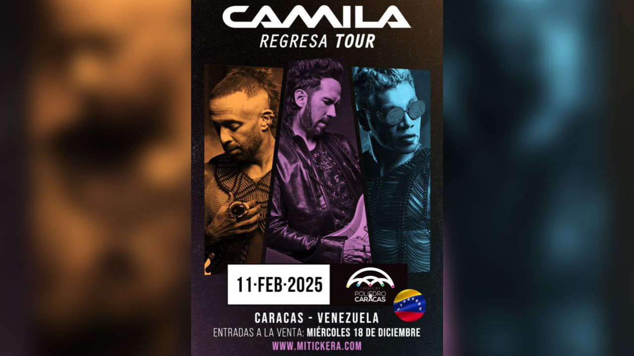 La agrupación mexicana Camila se presentará nuevamente en Venezuela el 11 de febrero como parte de su gira «Regresa Tour». La información fue confirmada por la productora de espectáculos Invershow en sus redes sociales.