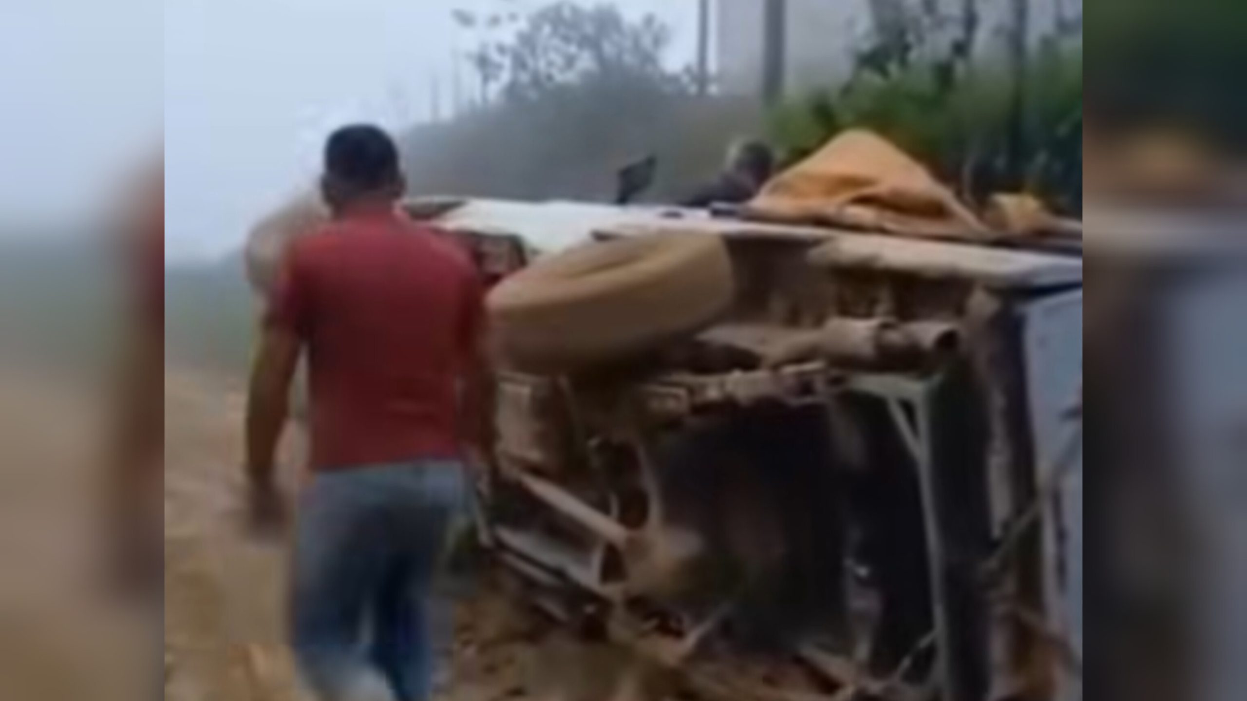 Una camioneta terminó volcäda en la comunidad de San Pedro El Páramo, ubicada en la parroquia Montaña Verde del municipio Torres, luego de que parte del terreno cediera por las intęnsas lluvias registradas en las últimas horas.