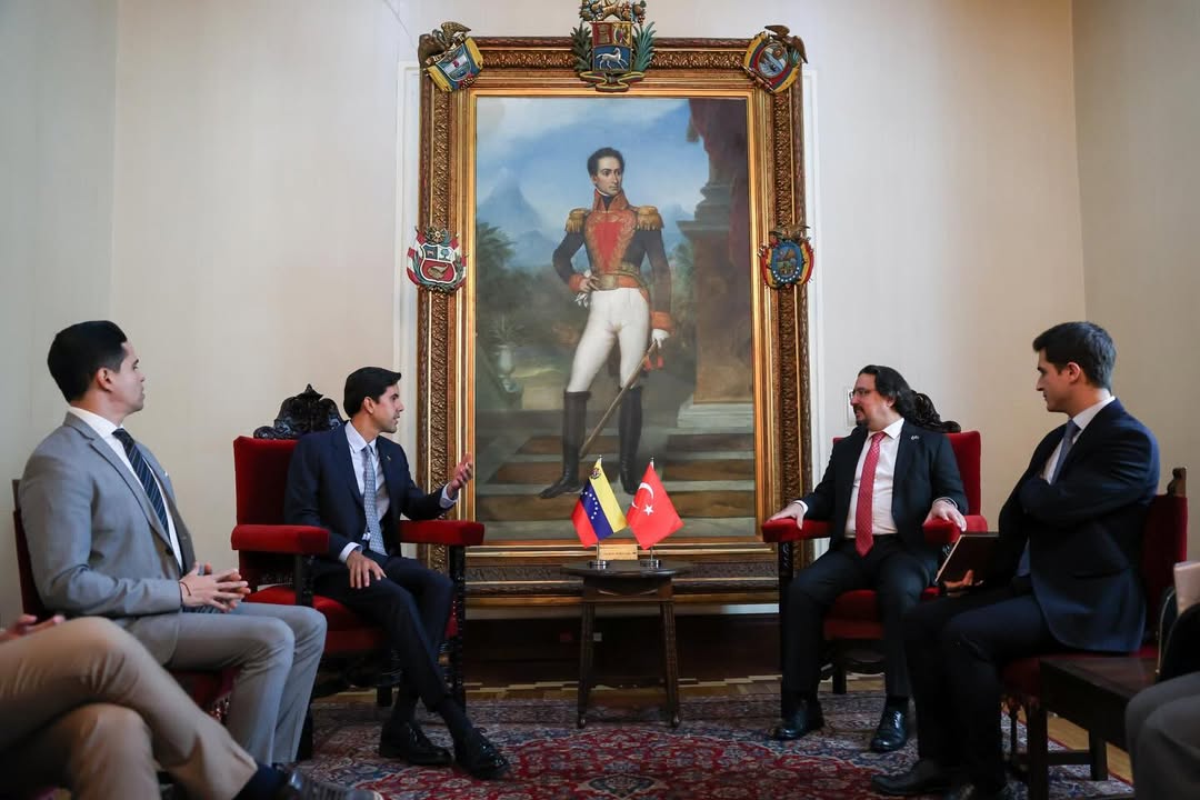 Este martes, el viceministro para Europa y América del Norte de la Cancillería venezolana, Oliver Blanco, sostuvo un encuentro oficial con el embajador de Türkiye, Aydan Karamanoğlu. La reunión tuvo como objetivo principal revisar y profundizar los temas de la agenda bilateral, consolidando los vínculos diplomáticos entre ambas naciones en un marco de respeto y entendimiento mutuo.