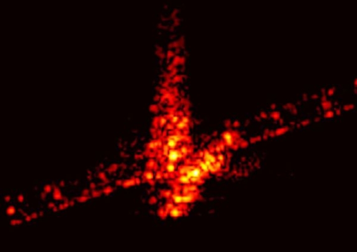 Se trata de una animación (que se puede ver bajo estas líneas) compuesta por ocho fotos capturadas por la antena radar de 34 metros de diámetro del el Instituto Fraunhofer, en Alemania, donde se puede ver como la nave incandescente se tambalea al entrar en contacto con la atmósfera terrestre.