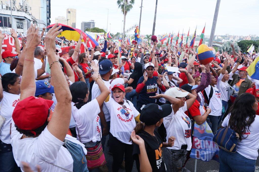 El evento comenzó por la tarde del jueves con una gran cantidad de personas que acompañaron al jefe de Estado en su cierre de campaña. “Hemos enfrentado la peor agresión de la historia, y hoy el pueblo está de pie, está victorioso y listo para la gran victoria del próximo domingo”, expresó Maduro.