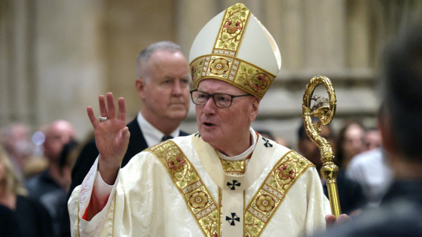 El cardenal Timothy Dolan, uno de los 133 asistentes al cónclave y a quien el propio Trump calificó de «buena» opción como sucesor de papa Francisco. Por el momento ha sido el único purpurado presente en Roma que ha criticado públicamente la foto del mandatario con sotana blanca.