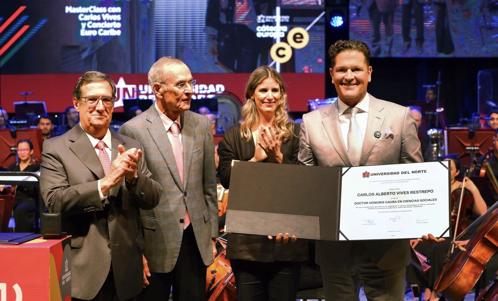 El artista samario Carlos Vives recibió por parte de la Universidad del Norte su doctorado Honoris Causa en Ciencias Sociales, por haber promovido la identidad y la cultura del Caribe colombiano.