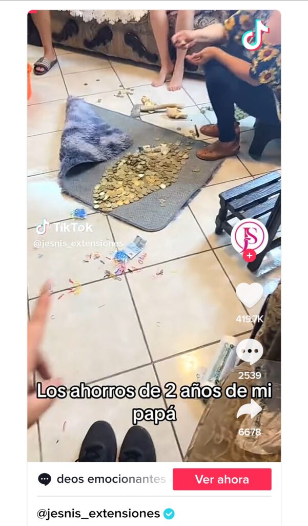 Sobre el final de la serie de videos que subió a TikTok, Jesnis informó a cuanto había llegado la fortuna que ahorrró su papá durante dos años y medio. Fueron 324.640 pesos mexicanos, lo que equivale, según la propia cuenta que realizaron quienes contaron la plata, a 19.096 dólares.