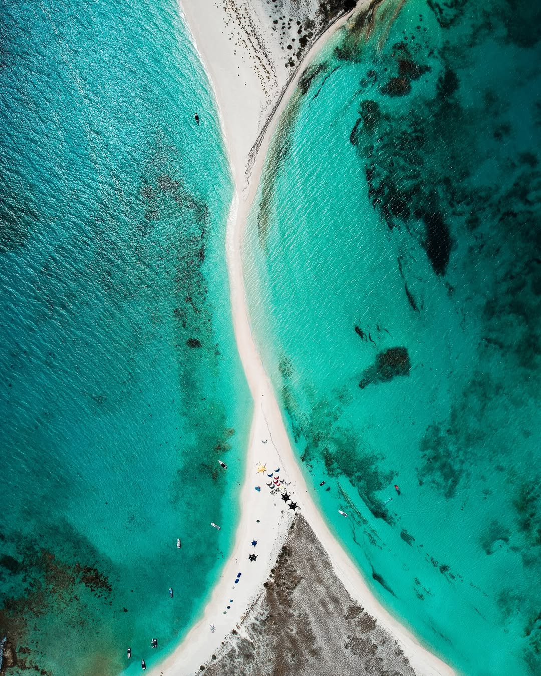 Lo que distingue a Cayo de Agua de cualquier otra playa es su singular formación: está compuesta por dos islotes conectados por un delgado corredor de arena blanca y coralina. Durante la marea baja, este «puente» de arena emerge, permitiendo a los visitantes caminar entre las aguas cristalinas de tonalidades azul intenso y turquesa a ambos lados.