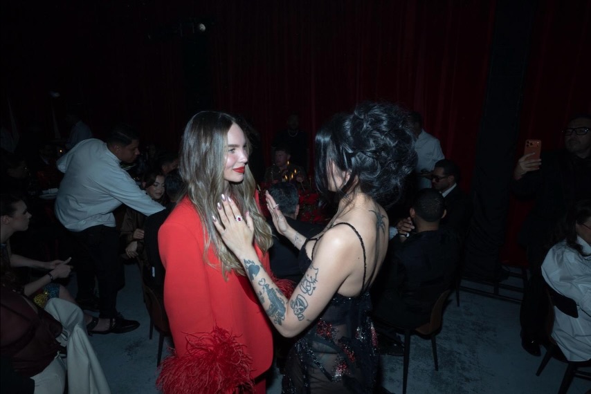 Dentro de la foto, se observa a Belinda con un look rojo espectacular, cargado de su estilo glamuroso, por su parte, Cazzu cuenta con un outfit edgy y moderno, fiel a su identidad artística. En una primera foto, ambas cantantes se encuentran abrazándose, mientras que en una segunda y tercera toma la intérprete de “Mucha Data” demuestra en su rostro y pose alegría por haber conocido a su “exsocia”.
