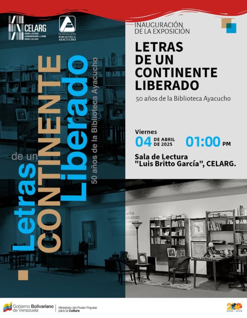 Este viernes 4 de abril el Centro de Estudios Latinoamericanos y del Caribe Rómulo Gallegos (CELARG) conmemora el legado literario de la Biblioteca Ayacucho con la exposición «Letras de un continente liberado, 50 años de la Biblioteca Ayacucho»