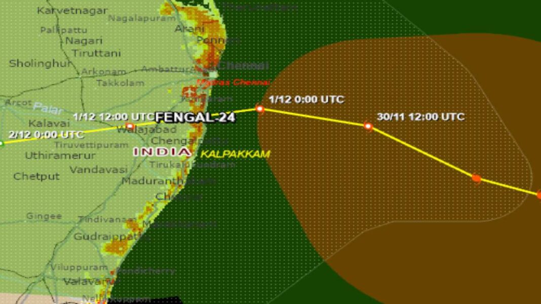 Los días 1 y 2 de diciembre, el IMD prevé que Fengal se desplace hacia el oeste y deje precipitaciones de intensidad fuerte a muy fuerte en los estados de Karnataka y Kerala.