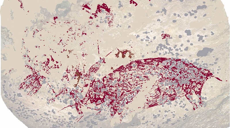 En la cueva caliza de Leang Karampuang, ubicada al sur de la isla de Célebes en Indonesia, un equipo de científicos halló una pintura rupestre que representa a tres figuras humanas en interacción con un cerdo salvaje, y una nueva técnica de datación reveló que el arte prehistórico data de al menos hace 51 mil 200 años. El equipo está compuesto por miembros de la Universidad australiana de Griffith, la Agencia Nacional de Investigación e Innovación de Indonesia, y la también australiana Southern Cross University.