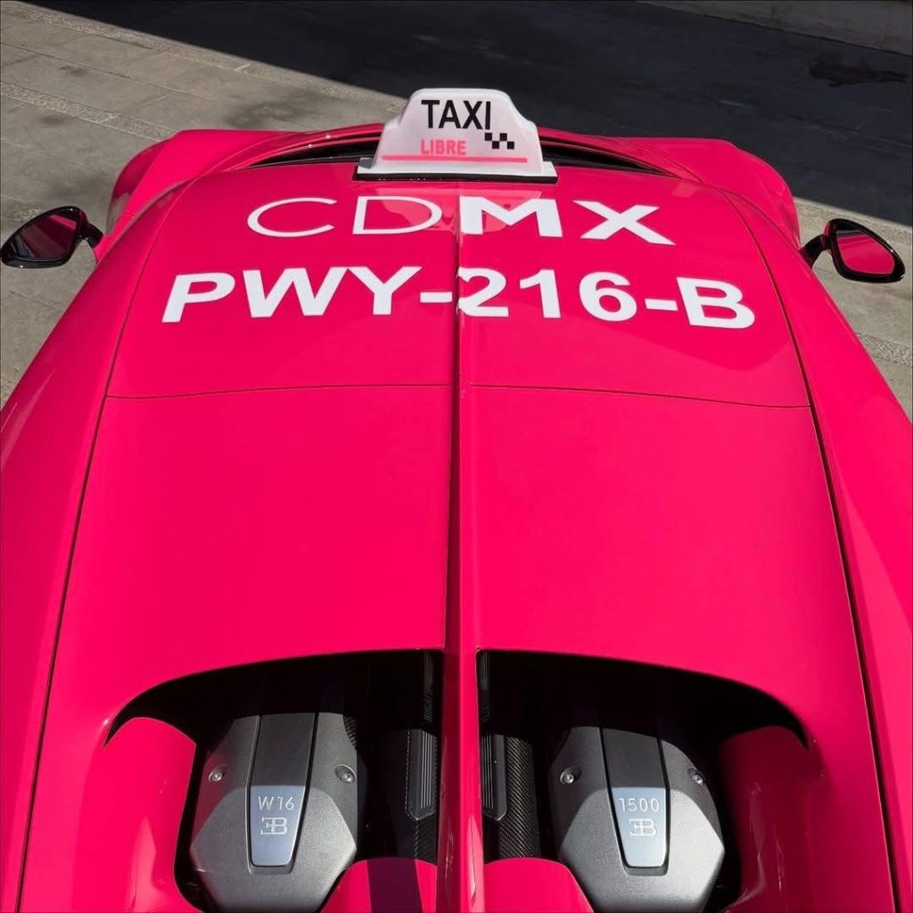 El hiperdeportivo, valorado en millones de dólares, fue visto circulando por las principales avenidas de la capital con la icónica cromática de los taxis locales, fusionando la máxima sofisticación francesa con el folclore urbano mexicano. Esta iniciativa, que rápidamente se volvió tendencia en redes sociales, muestra al vehículo de 1.500 caballos de fuêrza con los distintivos rótulos y colores que caracterizan al transporte público capitalino.