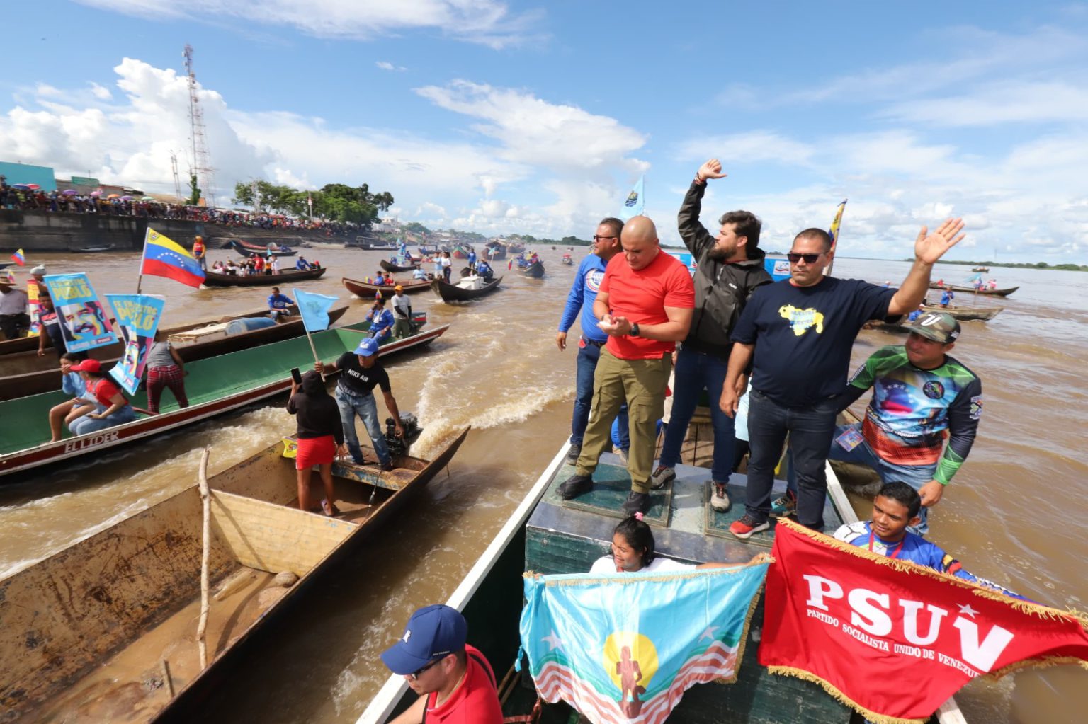 Con una caravana fluvial desde el sector San Rafael hasta el Malecón de Barrancas encabezada por el gobernador y jefe político del estado Monagas, Ernesto Luna; el ministro de Acuicultura y Pesca, Juan Carlos Loyo, y el alcalde José Maldonado; los 20 consejos de pescadores mostraron su apoyo al mandatario nacional.