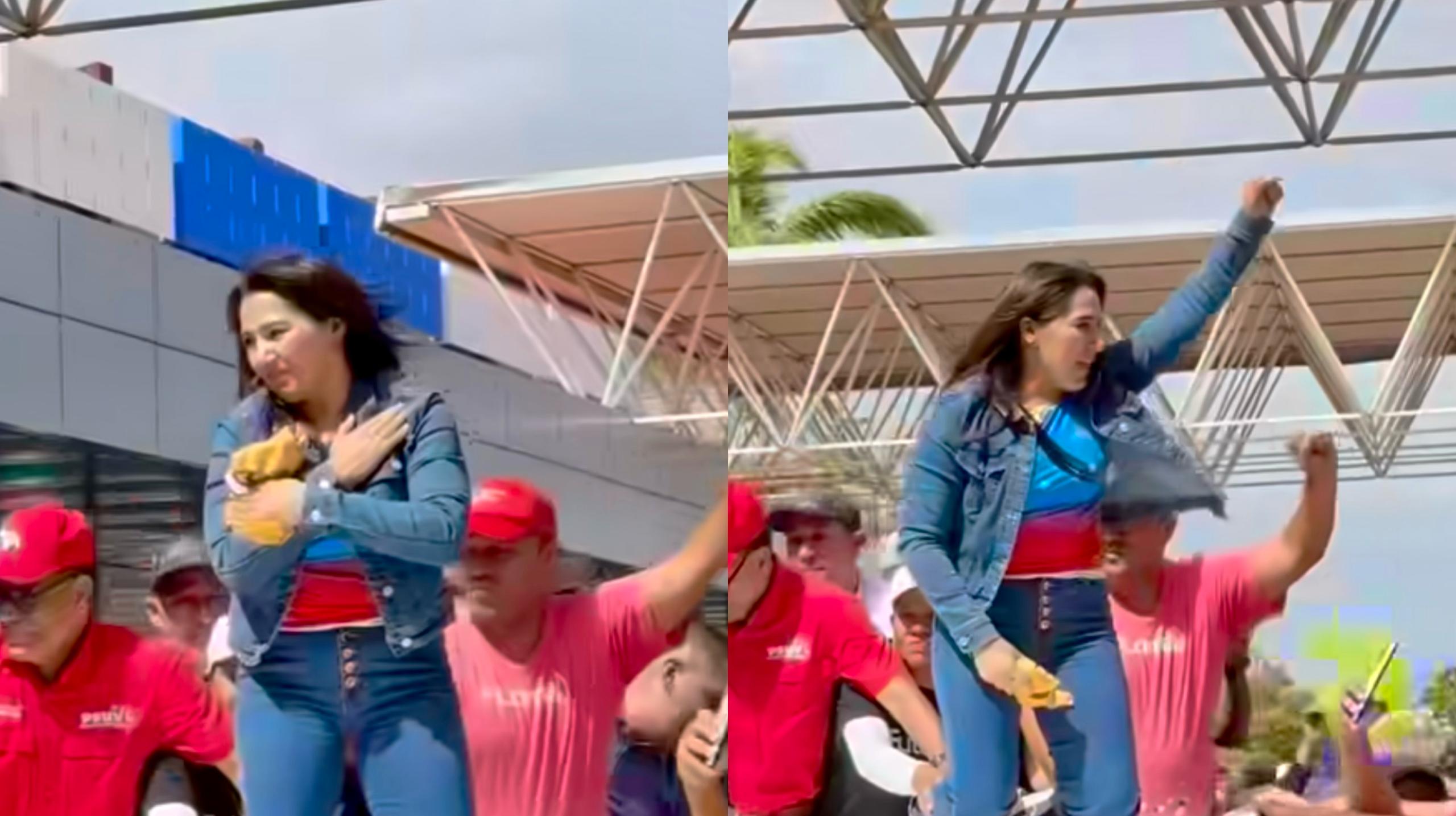 En el aeropuerto de la capital sucrense, Carrillo fue recibida por una multitud de personas quienes de diversas formas le mostraron su apoyo y respaldo al frente de la entidad sucrense.