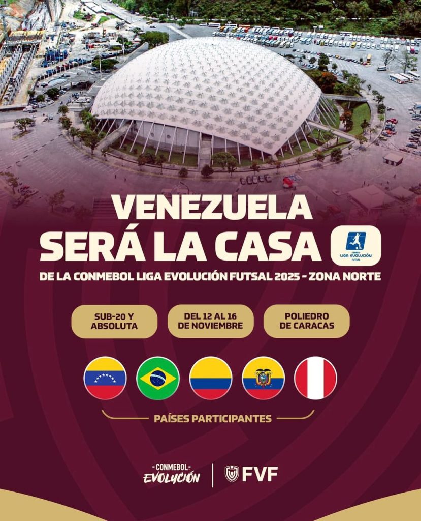 La Federación Venezolana de Fútbol (FVF) informó que el país fue designado como anfitrión de la Conmebol Liga Evolución Futsal Zona Norte 2025. El anuncio lo realizó el organismo a través de sus redes sociales, en las que se detalló que el Poliedro de Caracas será el escenario elegido para recibir a cada uno de los partidos de este torneo internacional.
