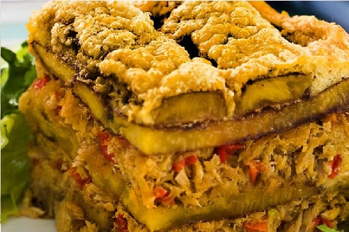 Pastel de Chucho: Un plato original del estado Nueva Esparta, el cual combina el sabor dulce del plátano y lo salado del pescado, los característico de este plato es su contrasta de textura, su preparación cuenta con cebolla, ajo, pimentón y tomate; se mezcla con huevo y se hornea en un molde.