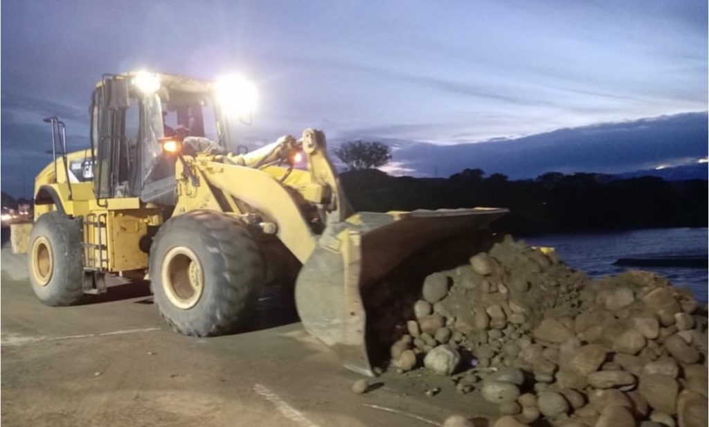 Entre las acciones prioritarias se incluyen la canalización y dragado del río adyacente, lo cual es fundamental para mitigar la erosión y redirigir el flujo de agua de manera controlada. Simultáneamente, se está aplicando material de relleno en la zona afectada para consolidar el terreno y fortalecer la base del puente.
