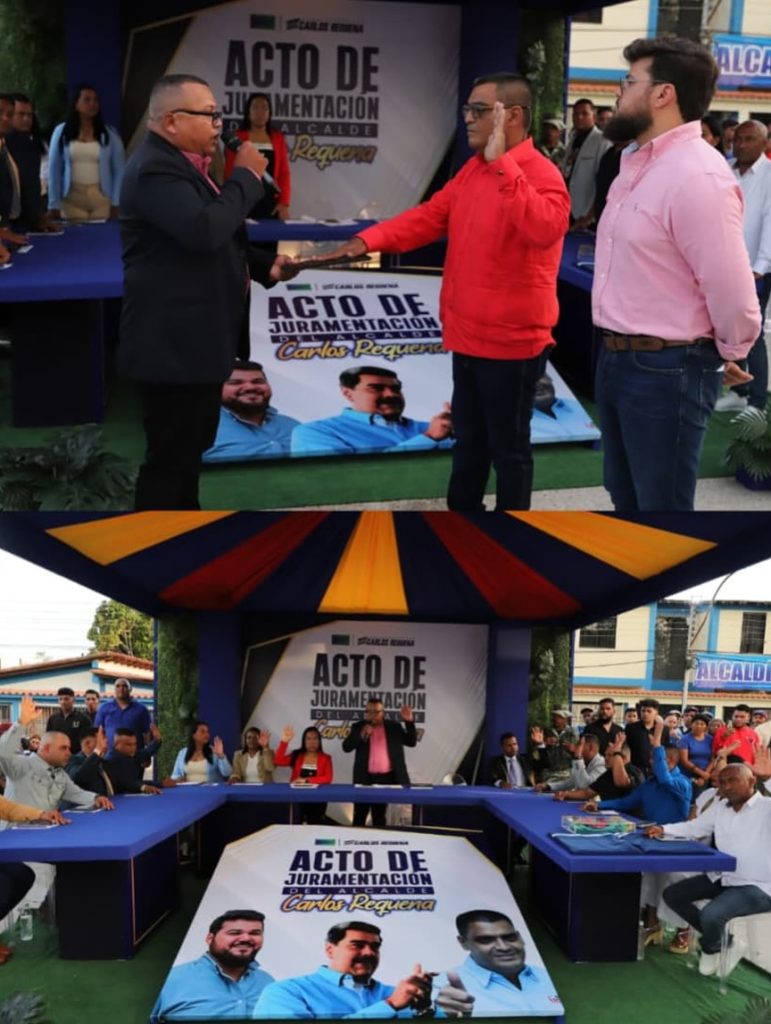 La ceremonia tuvo lugar en la plaza Bolívar y reunió a concejales, líderes comunitarios, representantes de instituciones públicas y al pueblo en general, quienes fueron protagonistas del momento en que Requena juró cumplir sus funciones colocando su mano sobre la Constitución, sostenida por el concejal Pedro González, presidente de la Cámara Municipal.