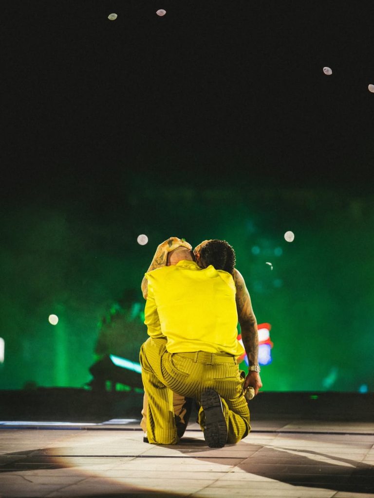 Maluma, visiblemente emocionado, se arrodilló ante Balvin en señal de profundo respeto y cariño, dejando atrás cualquier recuerdo de la antigua rivalidad. Ante el rugido del público, J Balvin se dirigió a Maluma con palabras llenas de afecto y gratitud, declarando que la intensa competencia se ha transformado en un lazo fraternal. “De ser una de mis mayores competencias, se ha vuelto un hermano”, expresó Balvin.