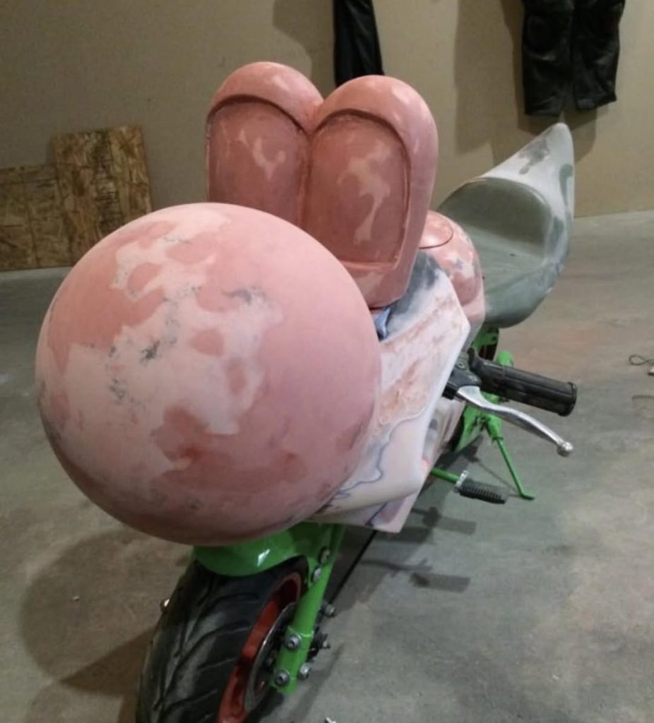 El constructor abordó cada etapa del proceso como una oportunidad de aprendizaje, adquiriendo habilidades de moldeo, pintura y acabado sobre la marcha, hasta lograr una estética completamente profesional. Cada panel de la moto fue moldeado a mano para adaptarse a la estética de Yoshi, resultando en un acabado liso y pulido.