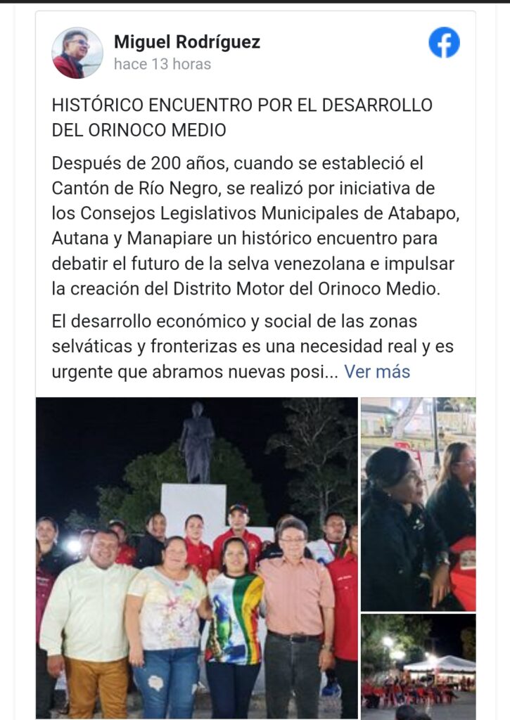 Después de 200 años del establecimiento del Cantón de Río Negro, por iniciativa de los Consejos Municipales de Atabapo, Autana y Manapiare, se realizó un encuentro para debatir el futuro de la selva venezolana e impulsar la creación del Distrito Motor del Orinoco Medio.