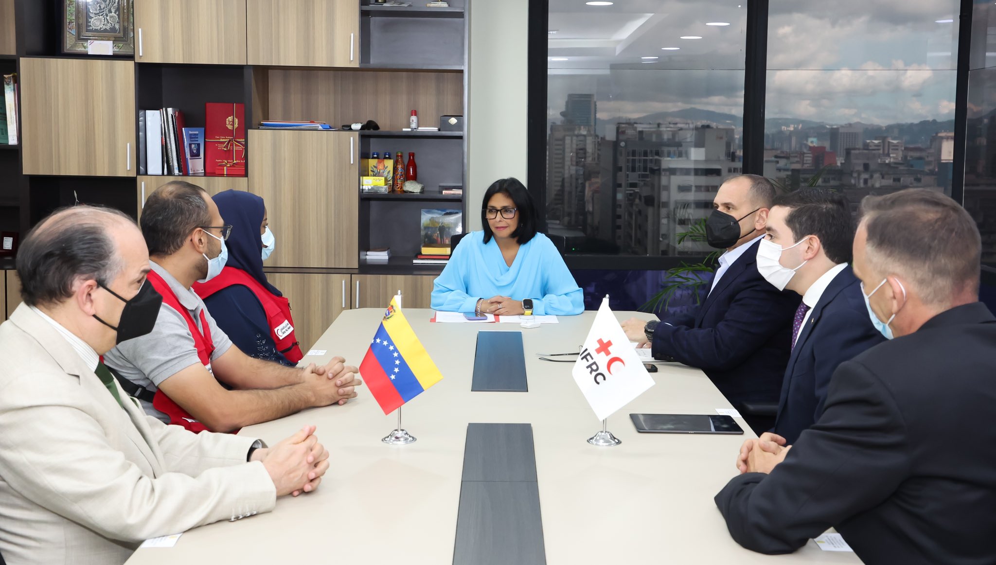 La vicepresidenta ejecutiva de la República, Delcy Rodríguez, sostuvo una reunión de trabajo con una delegación de la Cruz Roja Internacional y la Media Luna Roja en la que se revisaron la cooperación de Venezuela con esas instituciones con alcance internacional.