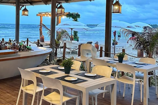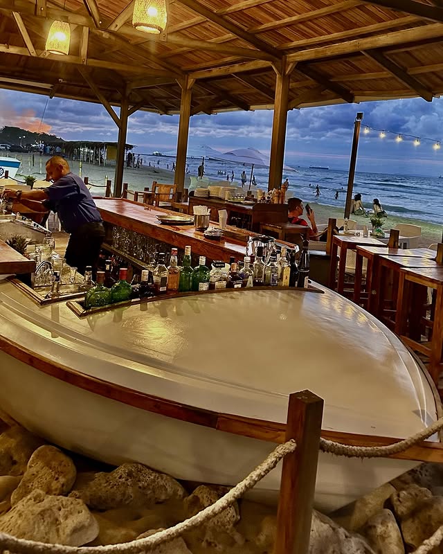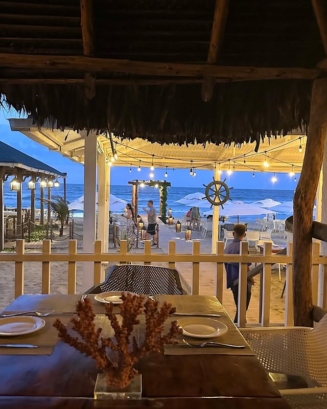El establecimiento ofrece dos ambientes diseñados para adaptarse a diferentes preferencias: una zona al aire libre con vistas directas a la playa y un espacio cerrado con aire acondicionado para quienes buscan más privacidad. Su decoración cuidada y la atención del personal garantizan una experiencia de alta calidad en todos los aspectos.