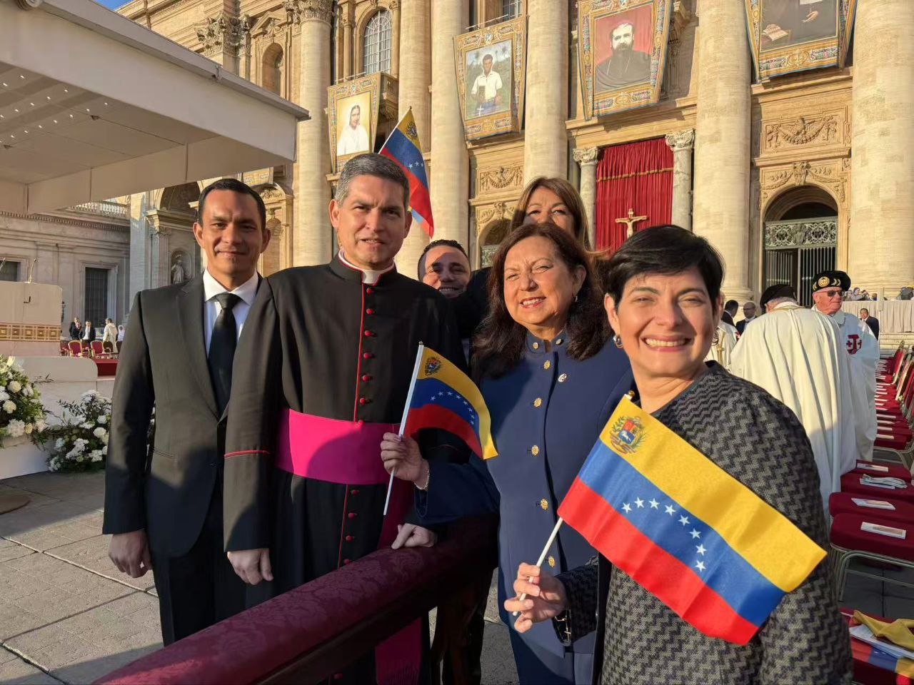 «Ya en el Vaticano, apreciamos las hermosas imágenes de los nuevos santos, que acompañan el acto de canonización este domingo #190ct y saludamos a las autoridades eclesiásticas que participan en este momento tan importante para Venezuela y el mundo,» expresó Meléndez.