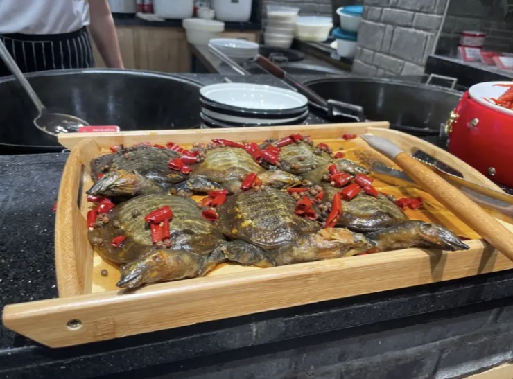 - También vi tortugas al vapor, hamburguesas de burro, pepino de mar y dim sum de pulpo, acotó Srivastava.