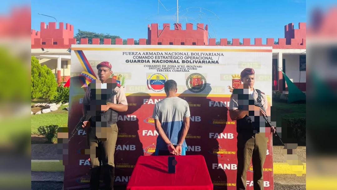 Efectivos militares de la Fuerza Armada Nacional Bolivariana (FANB), adscritos al Comando de Zona de la Guardia Nacional Bolivariana Nro. 62 del estado Bolívar, llevaron a cabo la detención en flagr@ncia de un ciudadano por el presunto delitÖ de viol@ción.