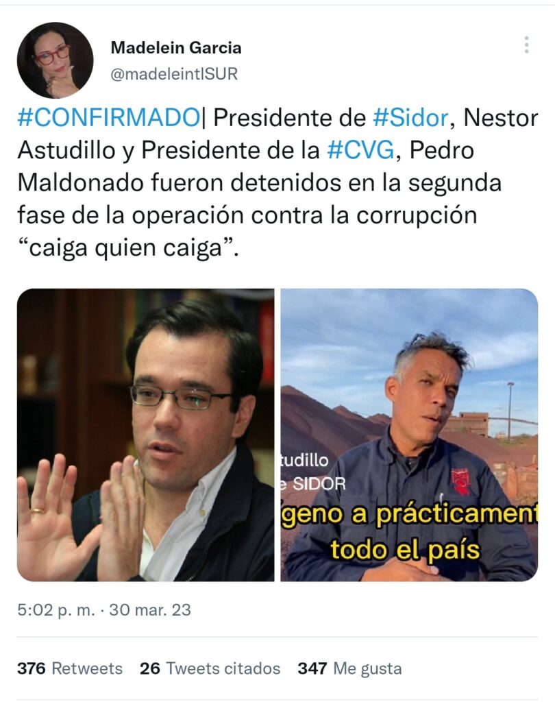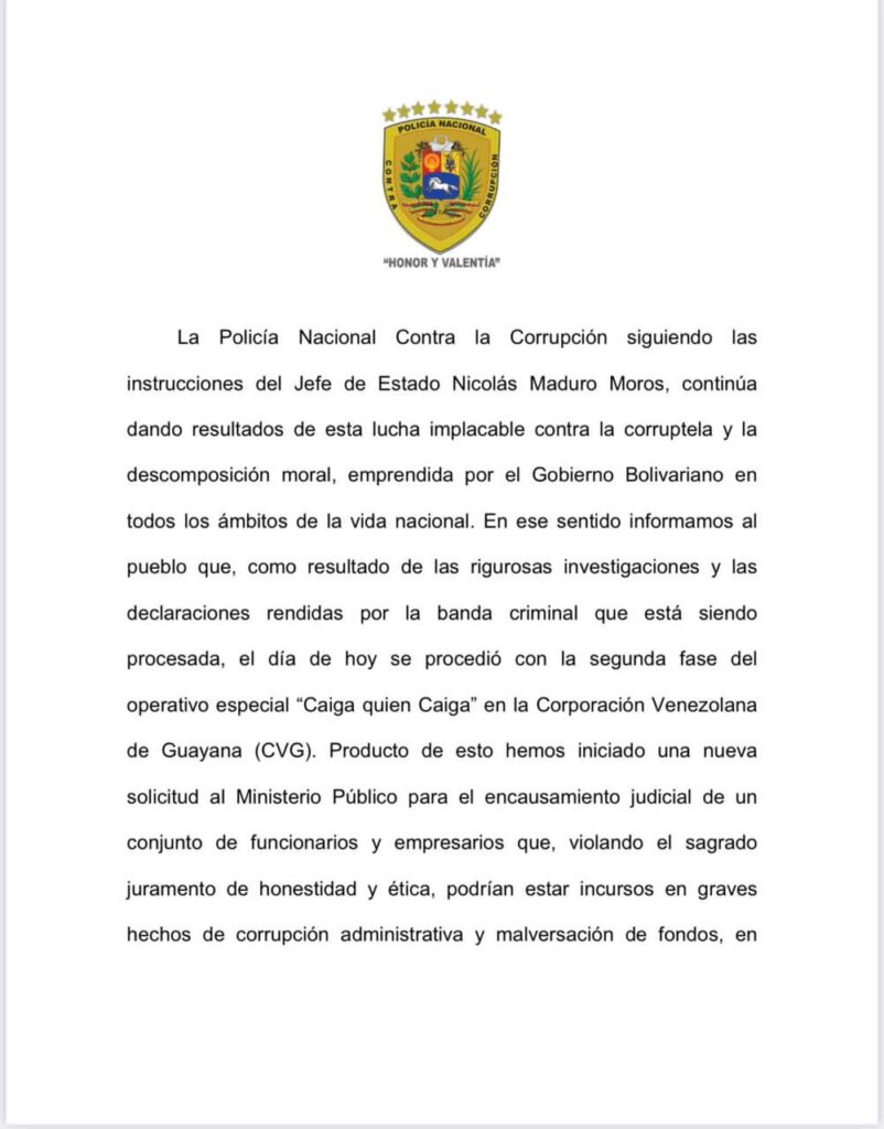 Es importante destacar, que los efectivos policiales llegaron a la sede de la CVG en el Estado Bolívar, al sur del país, para realizar dicha captura.