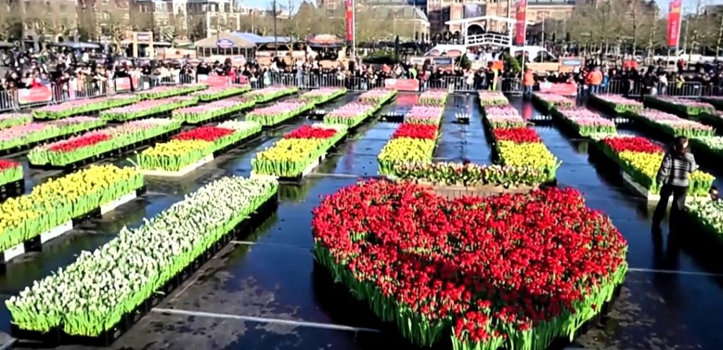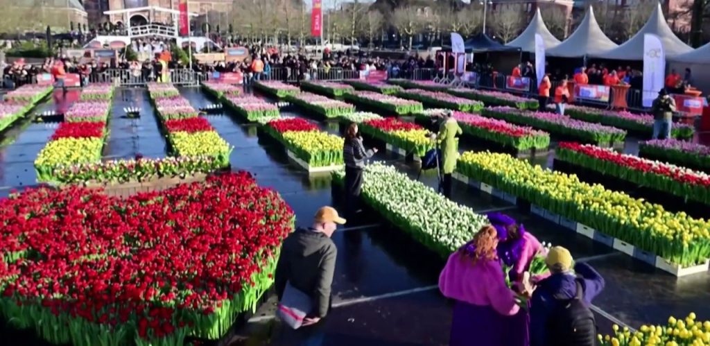 La instalación, organizada para celebrar la primavera y la larga vinculación de los Países Bajos con el tulipán, estuvo abierta al público y se invitó a los visitantes a recoger tulipanes gratis.