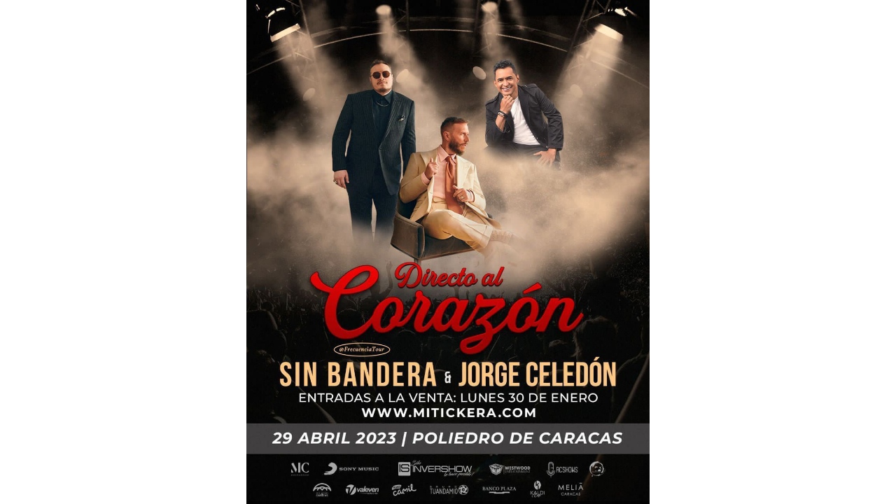 El colombiano Jorge Celedón y el famoso dúo Sin Bandera se reunirán el próximo 29 de abril, para ofrecer un concierto lleno de romance en el Poliedro de Caracas.