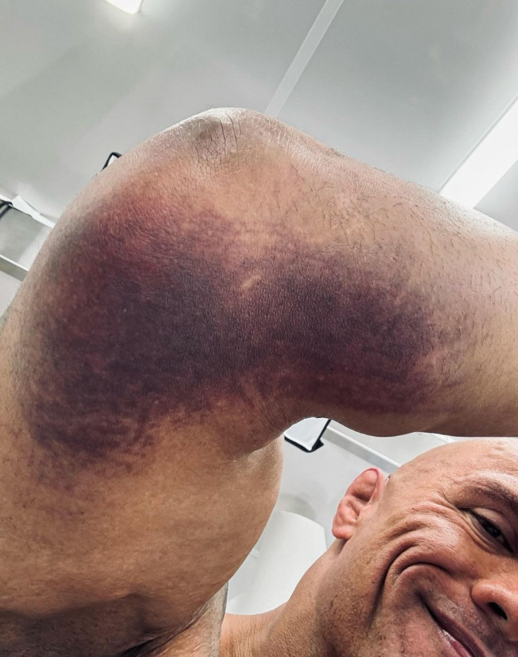 «Parece que tengo un melón en la parte inferior del codo. Hoy me golpearon bastante bien en nuestras escenas. Y me han dicho que podría haber algún daño en los tejidos blandos allí. Eso es mucho líquido, ya veremos. Primero tengo que sacarlo antes de hacerme cualquier tipo de resonancia magnética», escribió Dwayne.